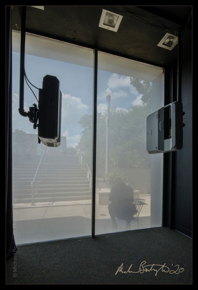 Core also does something very unique: they have installed scrims in the street front windows with rear-projection equipment and they show recorded programs to the passing pedestrians on the Decatur Square.